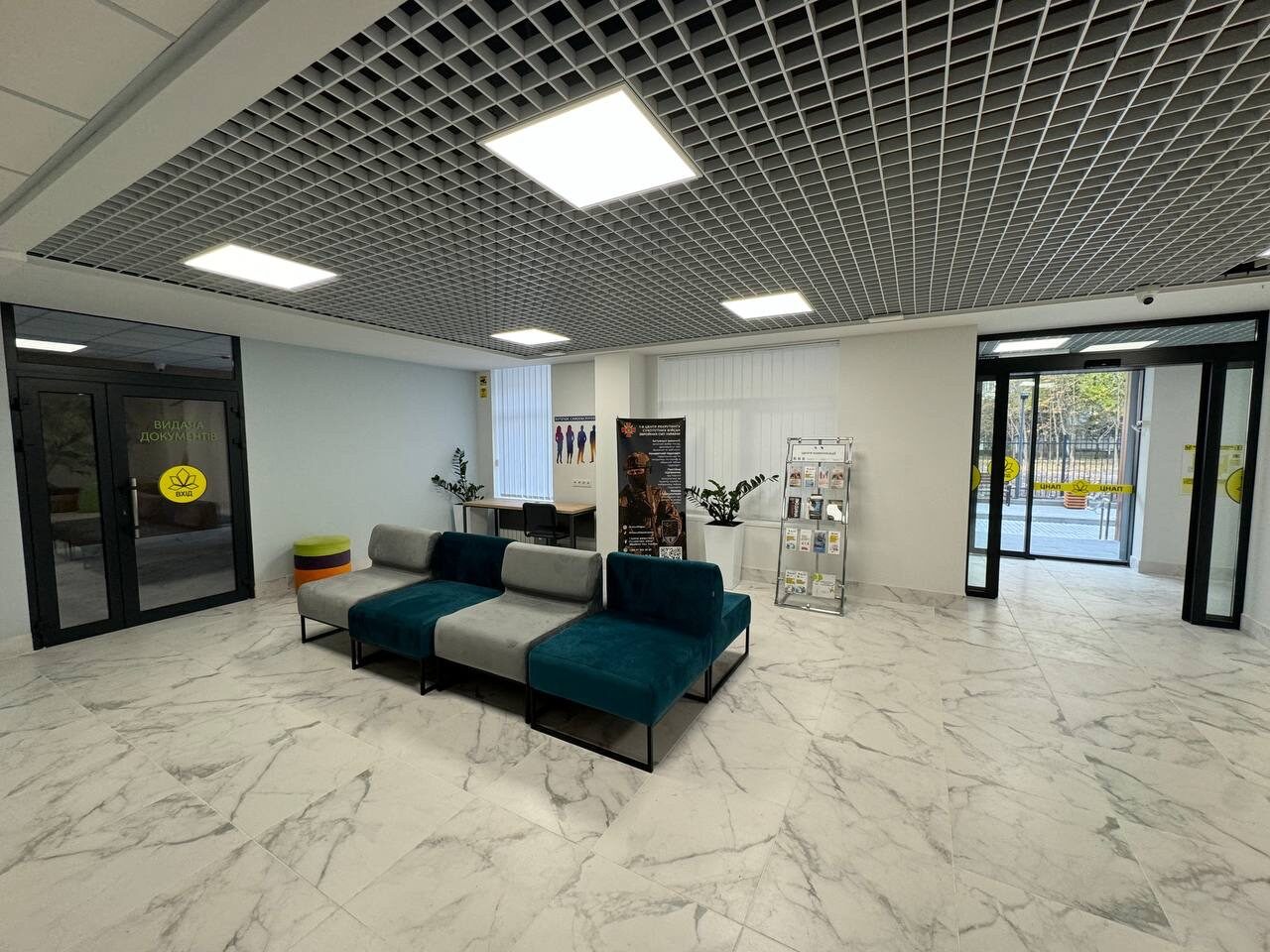 Райдержадміністрацією завершено капітальний ремонт будівлі управління соціальної та ветеранської політики райдержадміністрації (далі – Управління) за адресою: Харківське шосе, 176-Г. Будівельні роботи було розпочато в серпні 2023 року. Кошторисна вартість робіт становить 80 763,184 тис. грн. Користувачі соціальних та адміністративних послуг тепер отримуватимуть їх у сучасному, комфортному та повністю безбар'єрному приміщенні, будівля обладнана ліфтом та місцями загального користування відповідно до вимог інклюзивності. Функціональність будівлі розширено – послуги можуть отримати до 500 громадян на день. На першому поверсі знаходиться філія управління (Центру) надання адміністративних послуг райдержадміністрації, яка надаватиме понад 450 послуг. Разом з тим, будівлю обладнано двома генераторами потужністю 37 кВт та 82 кВт для безперебійної роботи. У підвальному приміщенні облаштовано інклюзивне укриття, до якого забезпечено цілодобовий доступ населення. Додатково облаштовано автостоянку на 35 автомобілів по зовнішньому периметру та на 20 автомобілів на території об’єкта, з яких 5 паркомісць передбачено для паркування транспортних засобів, якими керують особи з інвалідністю або водії, які перевозять осіб з інвалідністю, що позначене піктограмою міжнародного символу доступності. Виконано широкий комплекс робіт з приведення до належного доступного стану прилеглої території до будівлі Управління, зокрема розміщено лави, біля яких забезпечено вільний простір для під'їзду крісла колісного або дитячого візка, облаштовано інклюзивний дитячий майданчик, укладено рівне та нековзке покриття, наявні місця для паркування велосипедів біля входу в будівлю. Вхідна група представлена сходами, на які нанесено контрастне маркування, та нормативним пандусом з двосторонніми поручнями, а також облаштована доступним фасадним інформаційним покажчиком зі шрифтом Брайля, на якому розміщено інформацію про назву, адресу, графік роботи установи. Вхід візуально виділено на тлі будівлі. На скляні двері та прозорий фасад вхідної групи нанесено контрастне маркування. Всередині приміщення встановлено тактильні інформаційні покажчики зі шрифтом Брайля, широкі дверні отвори без порогів, на першу та останню сходинки сходових маршів нанесено фарбу контрастного кольору. Усі прозорі скляні конструкції, якізнаходяться на шляхах руху маломобільних груп населення, а також прозорі елементи об’єктів, де відбувається отримання послуг відвідувачами мають контрастне маркування. Рецепція розміщена на двох висотах, наявні екрани з інформацією про чергу, є аудіоозвучення стану черги. У приміщенні є підйомник, який доступний для маломобільних груп населення і може доставити відвідувачів на другий поверх та укриття. Обладнано дитячу ігрову зону. Облаштовано 3 санвузли для маломобільних груп населення. Для забезпечення цифрової доступності є відкрита гостьова мережа Wi-Fi без використання паролів (фото «до» та «після» виконання робіт додаються). Для забезпечення фізичної доступності осіб з інвалідністю та інших маломобільних груп населення проводяться роботи з облаштування безбар’єрних маршрутів до будівлі від найближчих зупинок громадського транспорту та територіального центру соціального обслуговування (надання соціальних послуг) Дарницького р