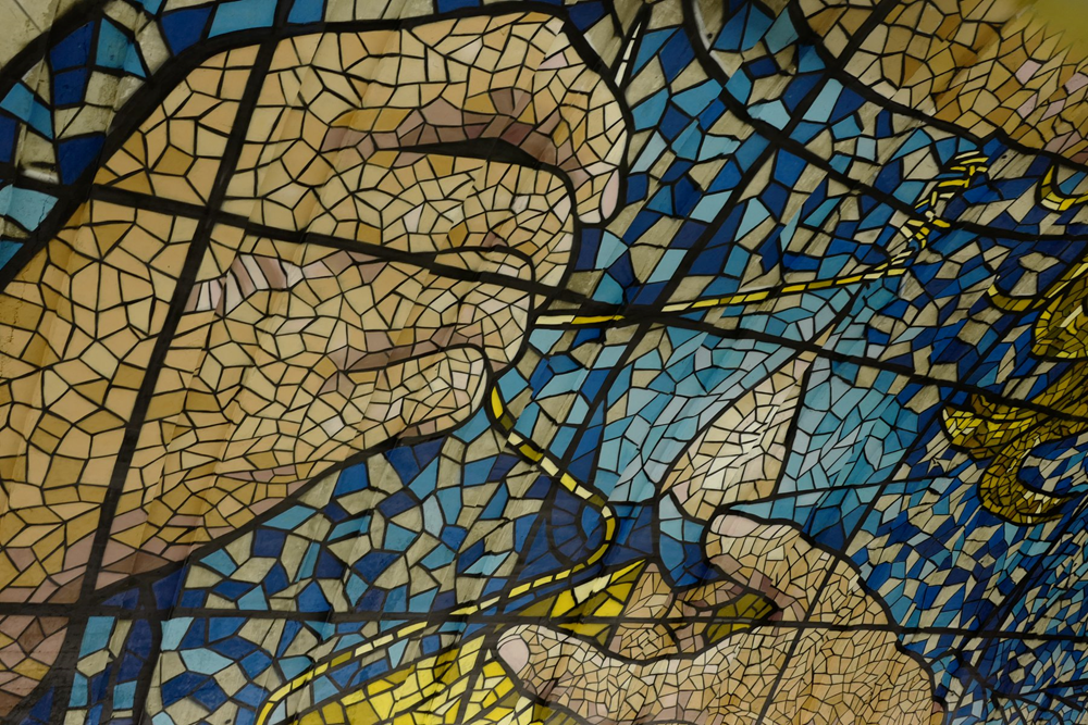 «Unfinished», дівчина з вітражного скла, яка збирає його по шматочках; робота зроблена в кольорах прапору України й уособлює шлях України до самоідентичності.