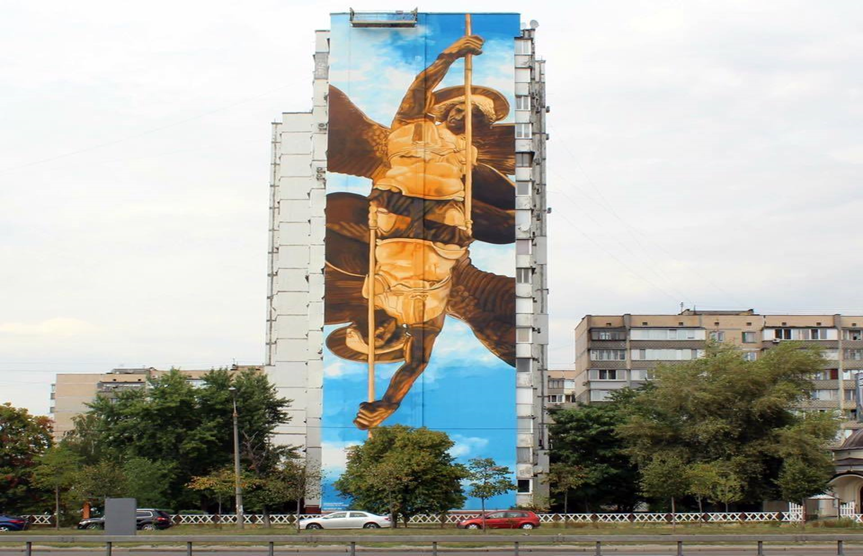 Стінопис "Архангел Михаїл" прикрашає будинок на проспекті Миколи Бажана 9. куратор проєкту "ArtUnitedUs" Гео Лерос, картину під назвою "Архангел Михаїл" створив художник Gaia.