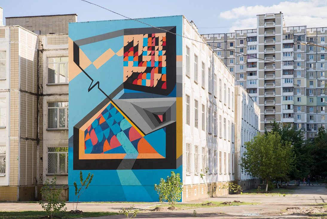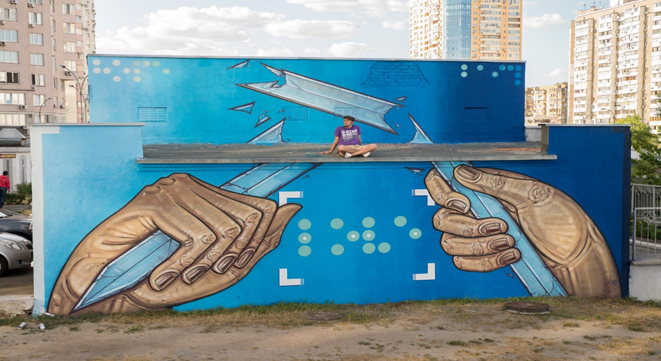 Луцький стріт-артист Андрій Калькова прикрасив масштабним малюнком київську середню школу № 314, яка знаходиться за адресою Княжий Затон, 7-А. Мурал створений в рамках фестивалю Mural Social Club.