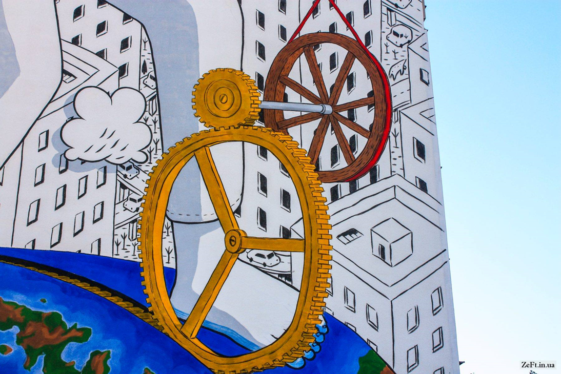 Автором муралу став відомий французький майстер стріт-арту Popay.