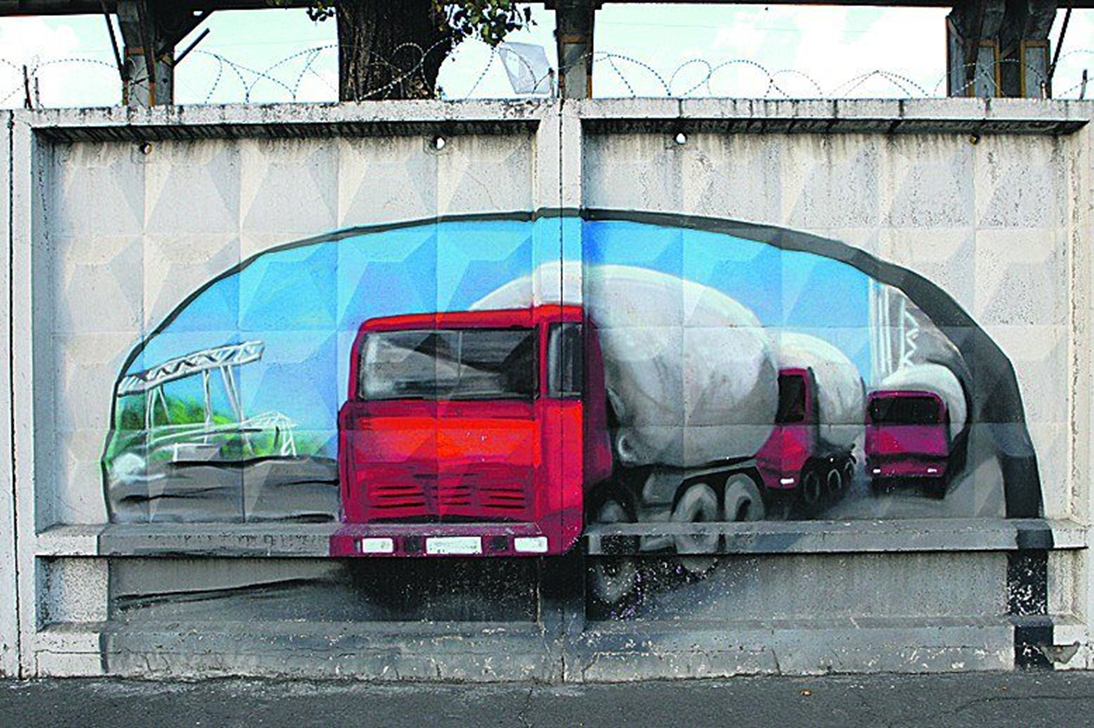 Один із перших муралів на паркані ПАО «Дарницкий завод ЖБК»
