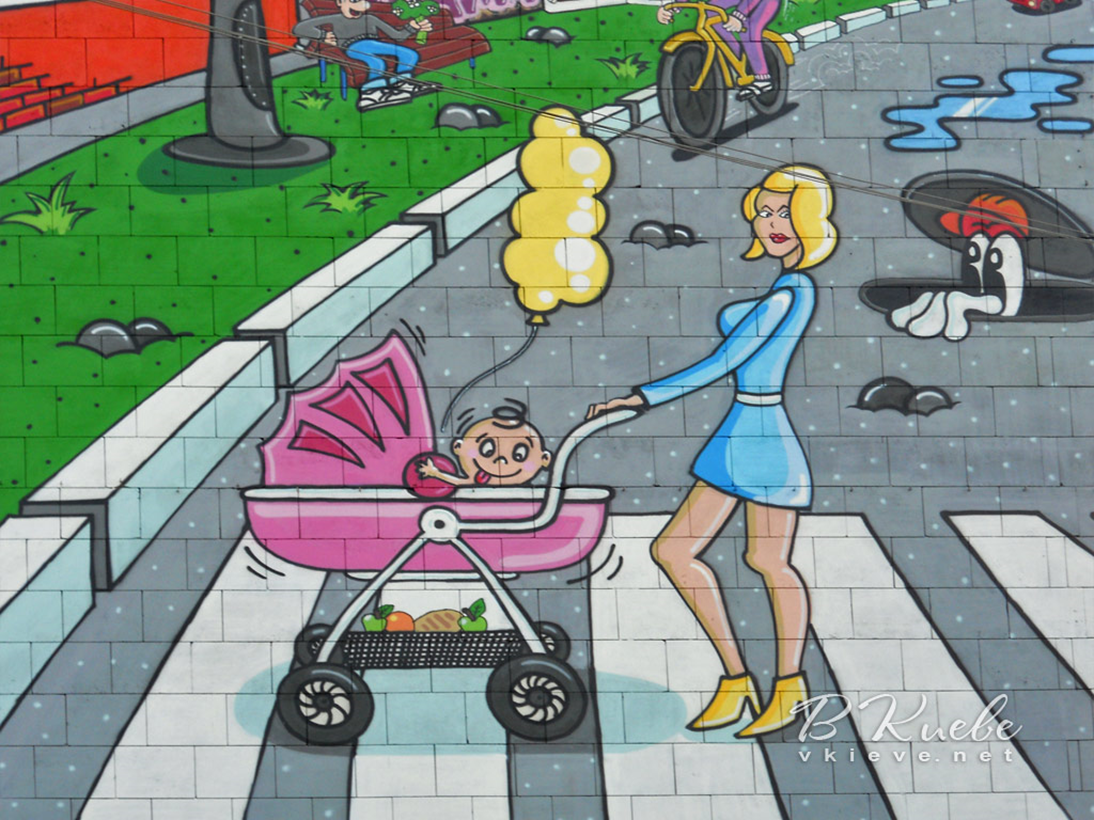 На вулиці Срібнокільській є стінопис, присвячений проблемі насильства