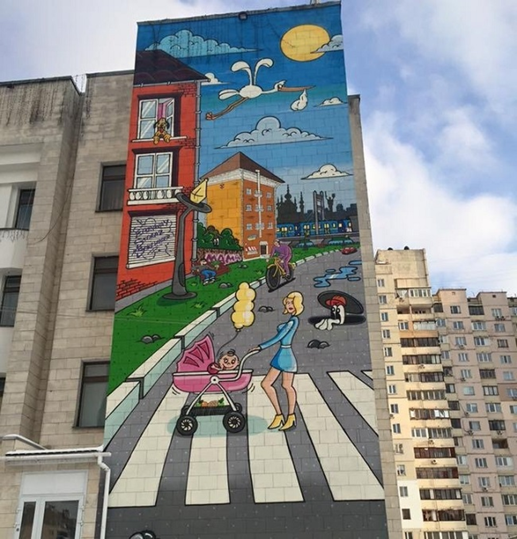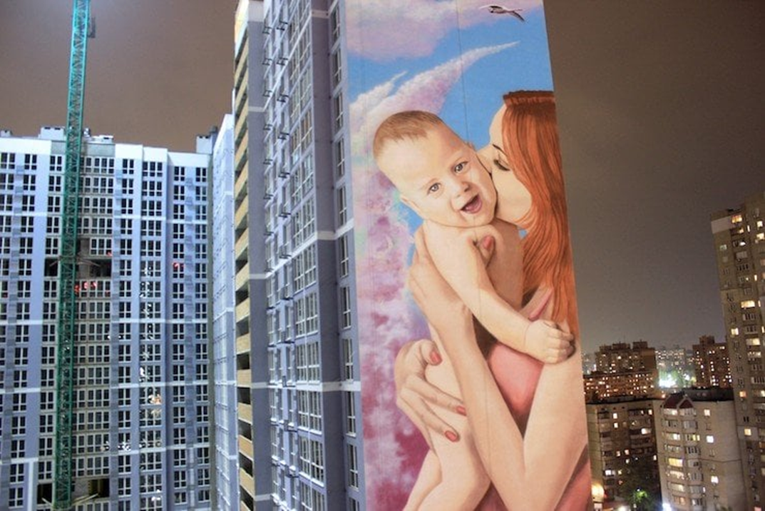 Мурал називається «Материнство» і уособлює одвічні сімейні цінності. Висота муралу становить78 м, а загальна площа 1155 кв.м., і це найвища подібна робота в Європі.