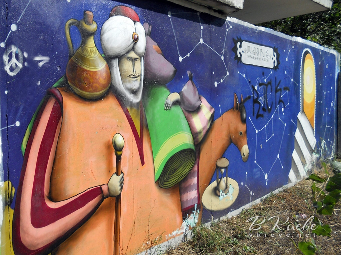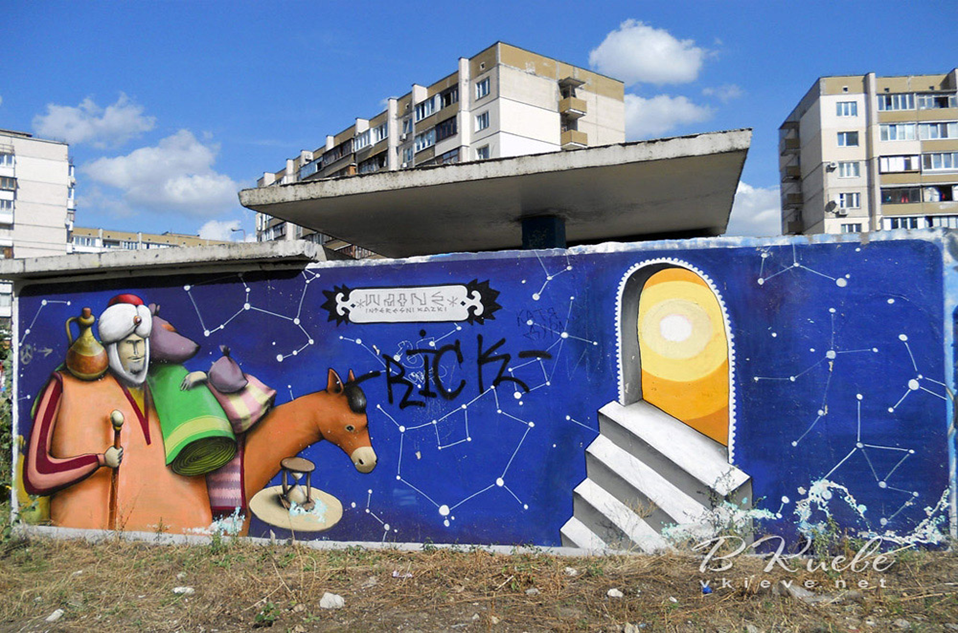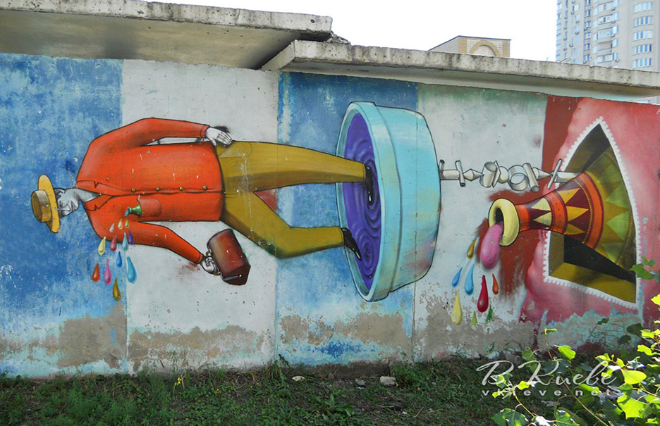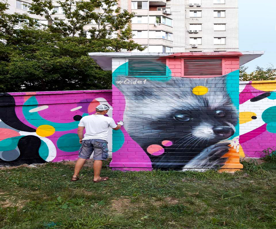 Графіті намалював відомий столичний художник Віталій Гідеван. Над малюнком художник працював більше двох тижнів, використавши більше 40 балончиків фарби.