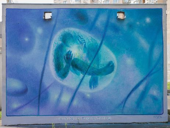 Український учасник фестивалю Mural Social Club Alexander Grebenyuk створив мурал у Києві за адресою Срібнокільська, 1. Свою фреску А. Гребенюк присвятив еволюції життя на землі. “Синергетика – це напрямок науки, що вивчає поведінку складних систем. У загальному сенсі – глобальний еволюціонізм. Ідея роботи приблизно наступна: поява нашої планети та розвиток на ній життя – як довгий ланцюг випадковостей. Образ людини, обплетеної рослинами, символізує нерозривний зв'язок з процесами глобальної еволюції”, - відзначає автор.