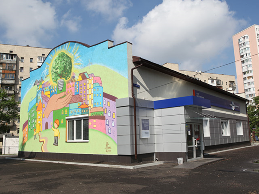Мурал на стіні Дарницької районної адміністрації в Києві