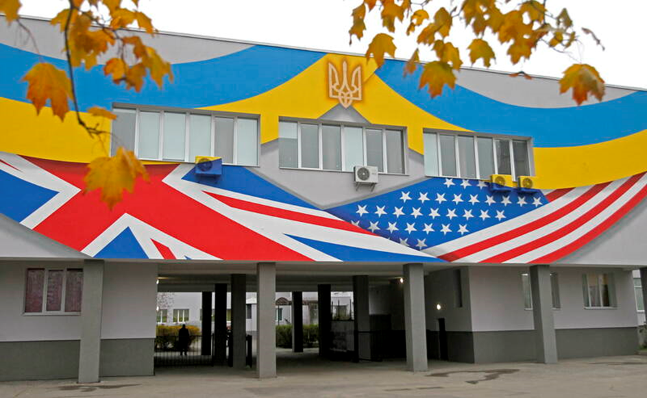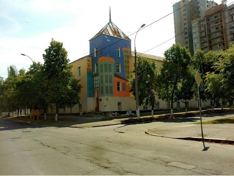 В рамках реконструкції гімназії № 315 на вулиці Драгоманова, 27-А яскраво розмалювали фасад закладу освіти