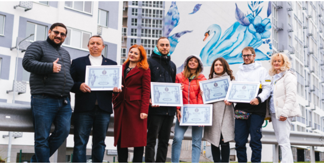 Він потрапив до Книги рекордів України за найвищий мурал у Європі на торці житлового будинку. Мурал заввишки аж 74 метри, що досі є максимальним показником серед усіх європейських.