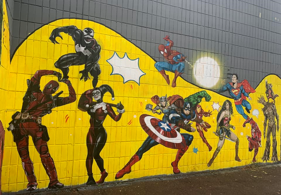 Супергеройський мурал прикрашає технічне приміщення біля будинку на вул. Княжий Затон, 16Б