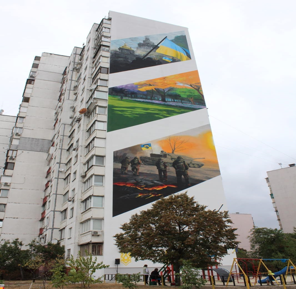 До 30-ї річниці незалежності України створено мурал на фасаді будинку по вул. Ревуцького, 40 (ЖК “Лебединий”)