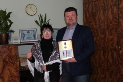 Лідер ГО «Всеукраїнський Жіночий рух «За вільну Україну» Раїса Шматко особисто вручила орден виконувачу обов’язків голови Дарницької райдержадміністрації Ярославу Лагуті.