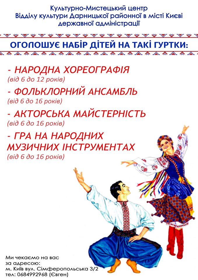 Культурно-Мистецький центр відділу культури Дарницької районної в місті Києві державної адміністрації — це те місце, де кожна талановита дитина може знайти можливість показати, на що він здатний.