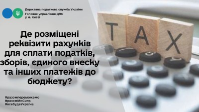 Де розміщені реквізити рахунків для сплати податків, зборів, єдиного внеску та інших платежів до бюджету?