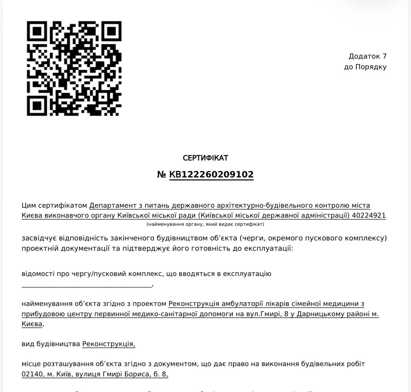Ми отримали сертифікат готовності до експлуатації реконструйованої амбулаторії на вулиці Бориса Гмирі, 8.