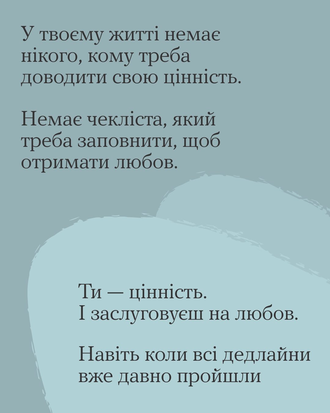 Але життя — це не змагання. Тут немає комісії, яка виставляє оцінки. І це добрі новини
