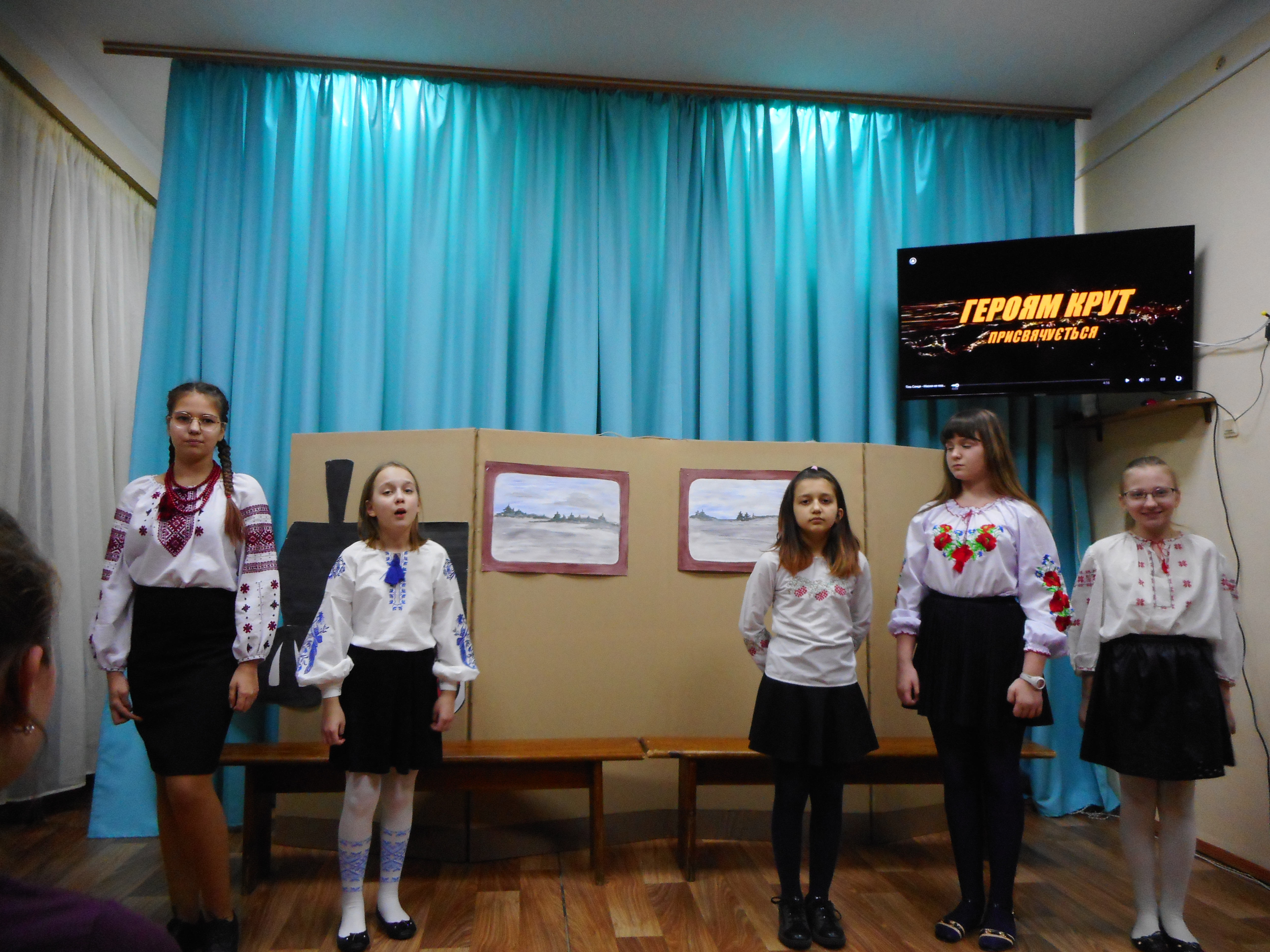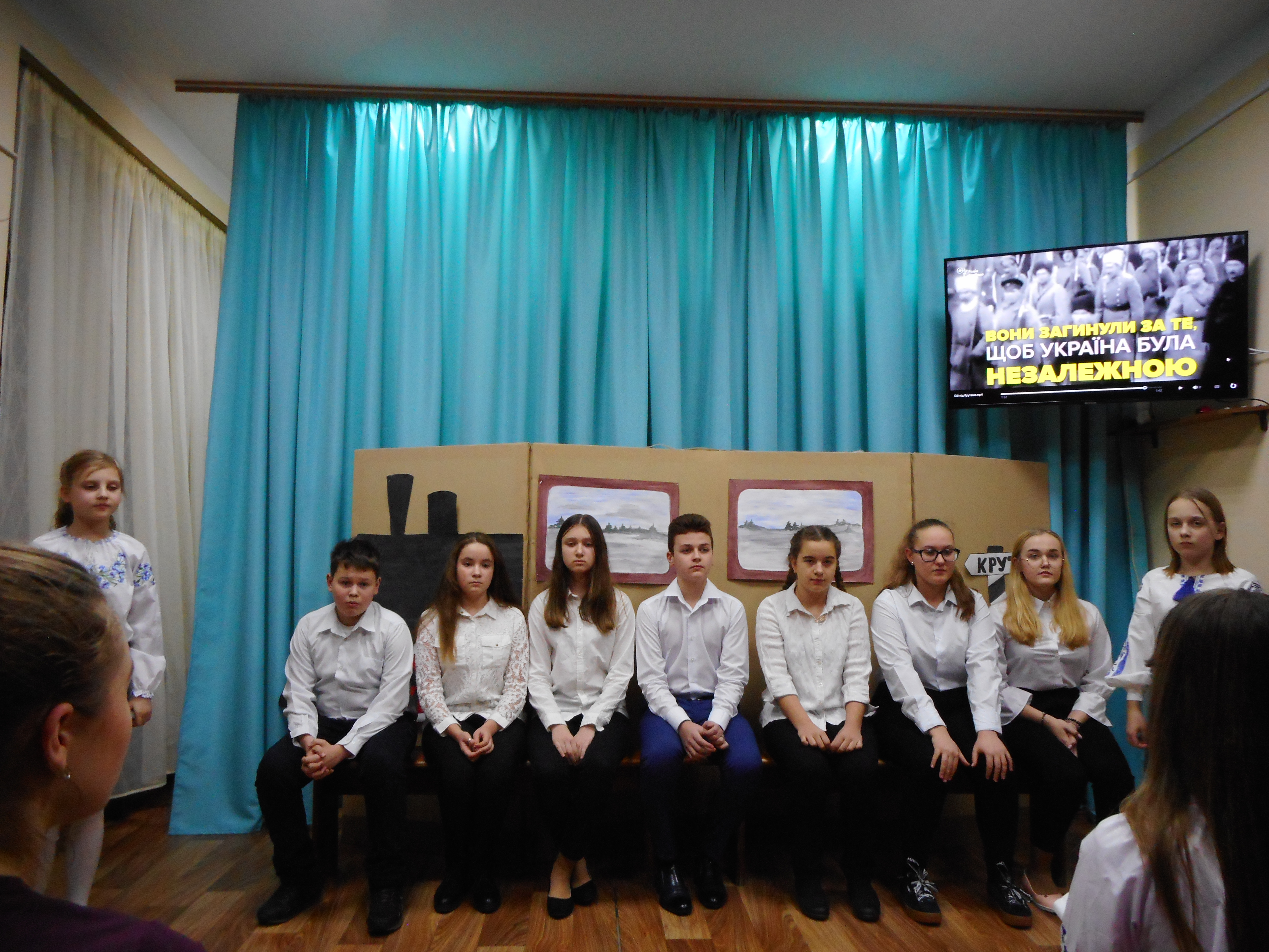29.01.2020 у клубі «Еллада» Центру по роботі з дітьми та молоддю за місцем проживання відбувся вечір вшанування пам’яті героїв Крут «Крути, Крути – вас не забути», учасниками якого були не тільки вихованці клубу, а й їх батьки. Присутні закріпили і поглибили знання про події 1918року під Крутами, що сприяло становленню національної свідомості вихованців, повагу до героїчних вчинків патріотів України. Завершенням вечора пам’яті став перегляд художнього фільму «Крути 1018».