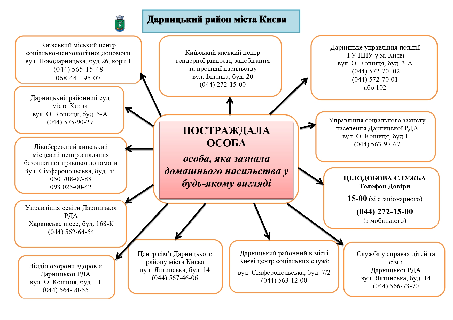 Мапа установ Дарницької райдержадміністрації, що надають допомогу особам, постраждалим від домашнього насильства і насильства за ознакою статі