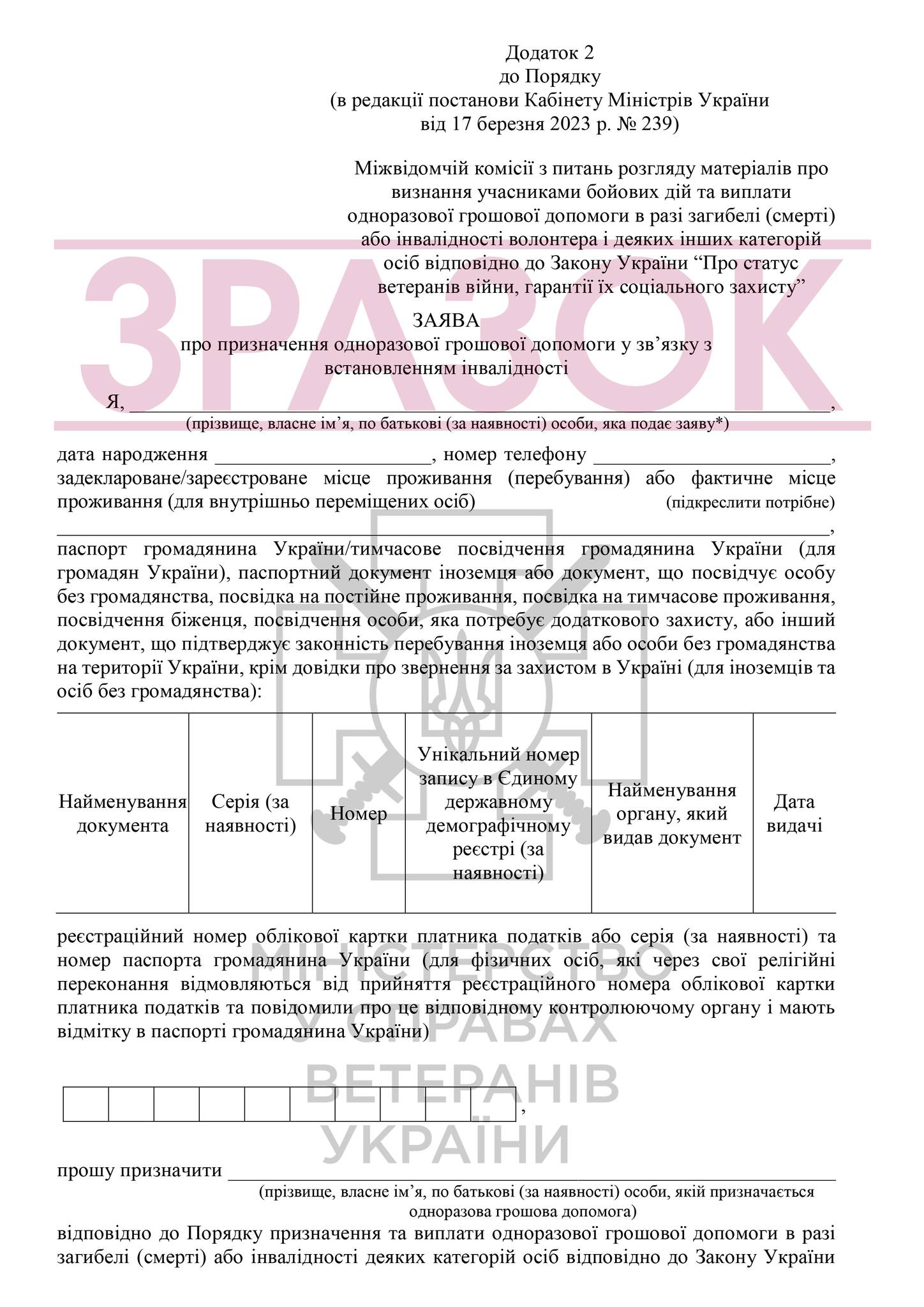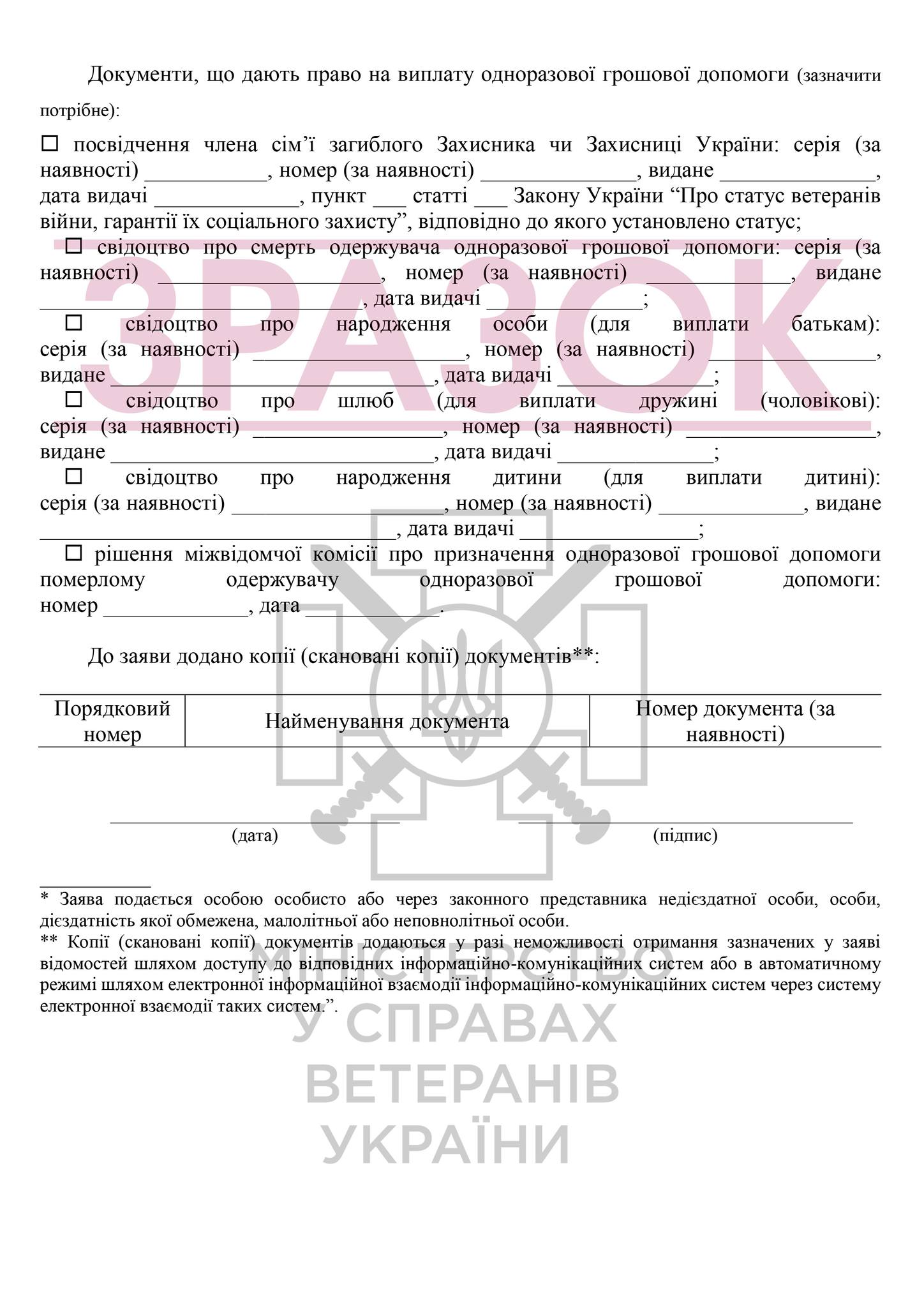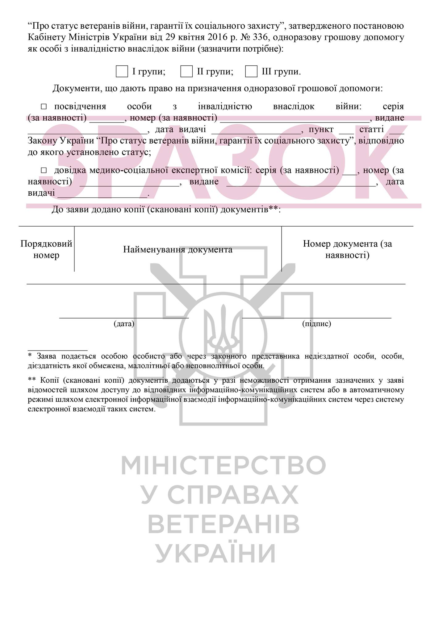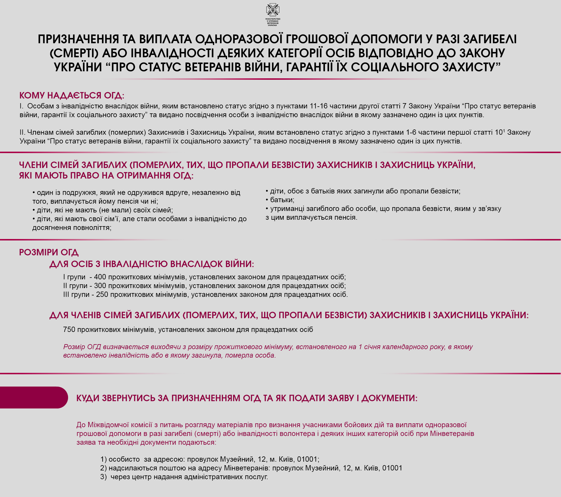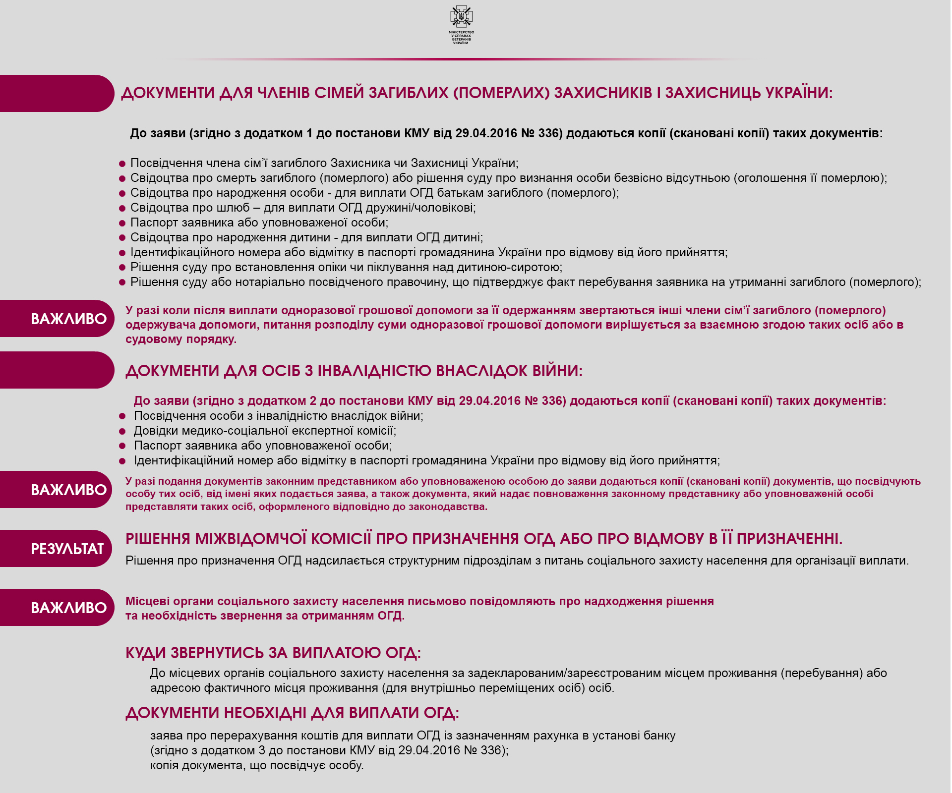 Мінветеранів підготувало інфографіку із роз'ясненням щодо призначення та виплати одноразової грошової допомоги