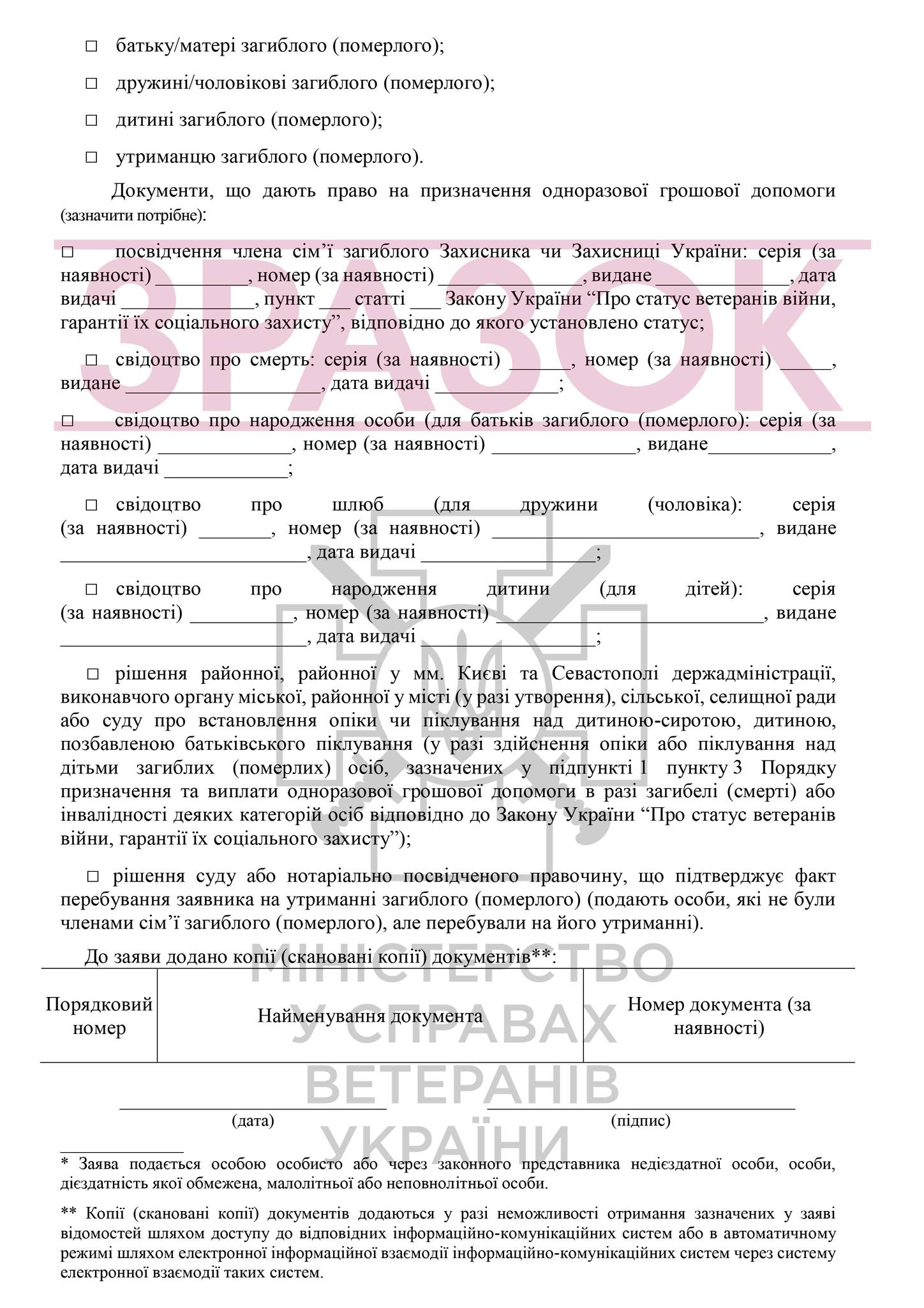 У разі загибелі (смерті) або інвалідності деяких категорій осіб відповідно до Закону України “Про статус ветеранів війни, гарантії їх соціального захисту”