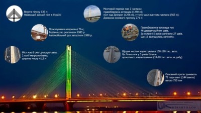 - висота пілону 135 м, це найвищий діючий міст в Україні;