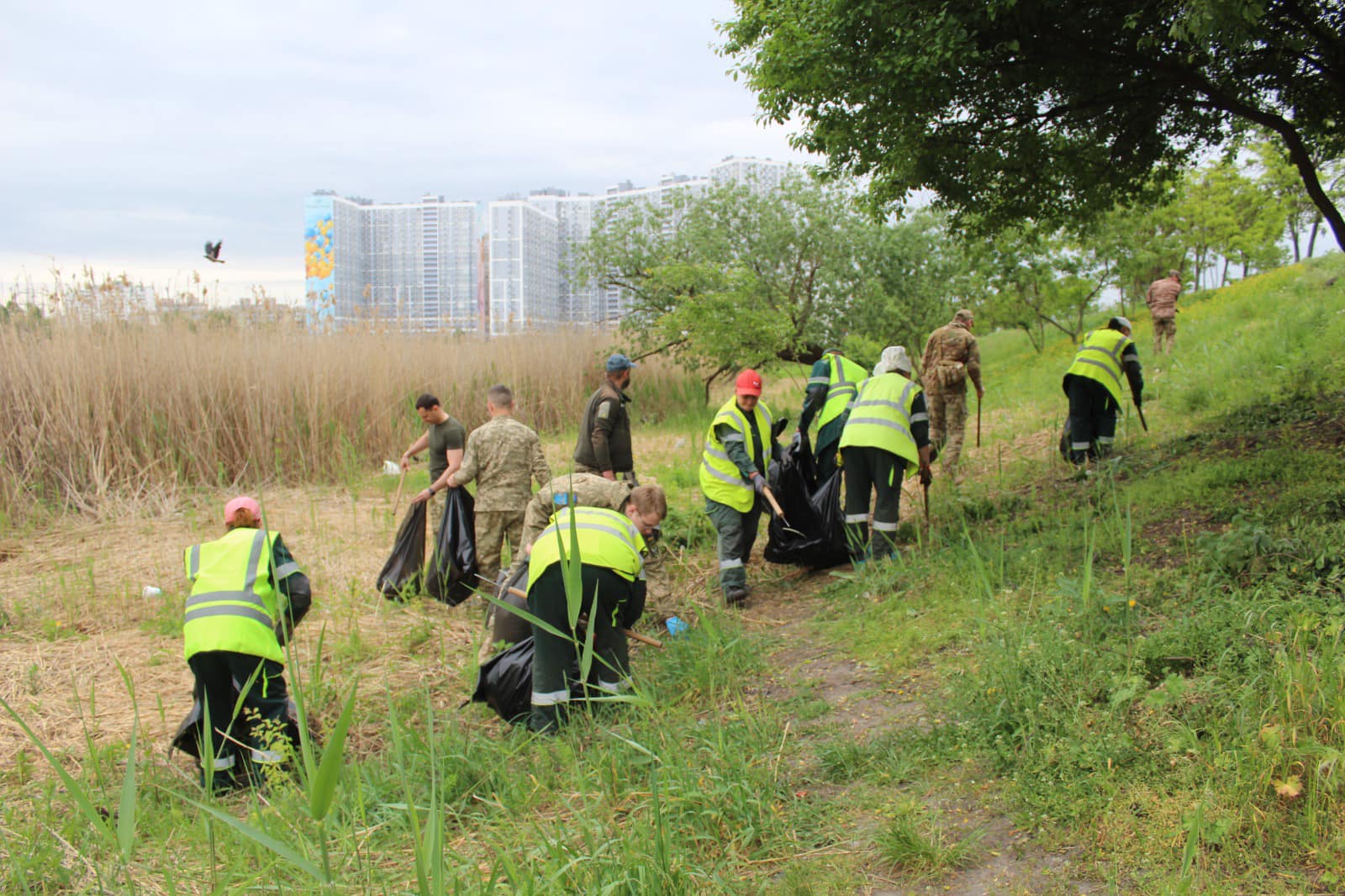 Прибрали ділянку вздовж просп. Миколи Бажана, зі сторони вул. Драгоманова, саму водойму.