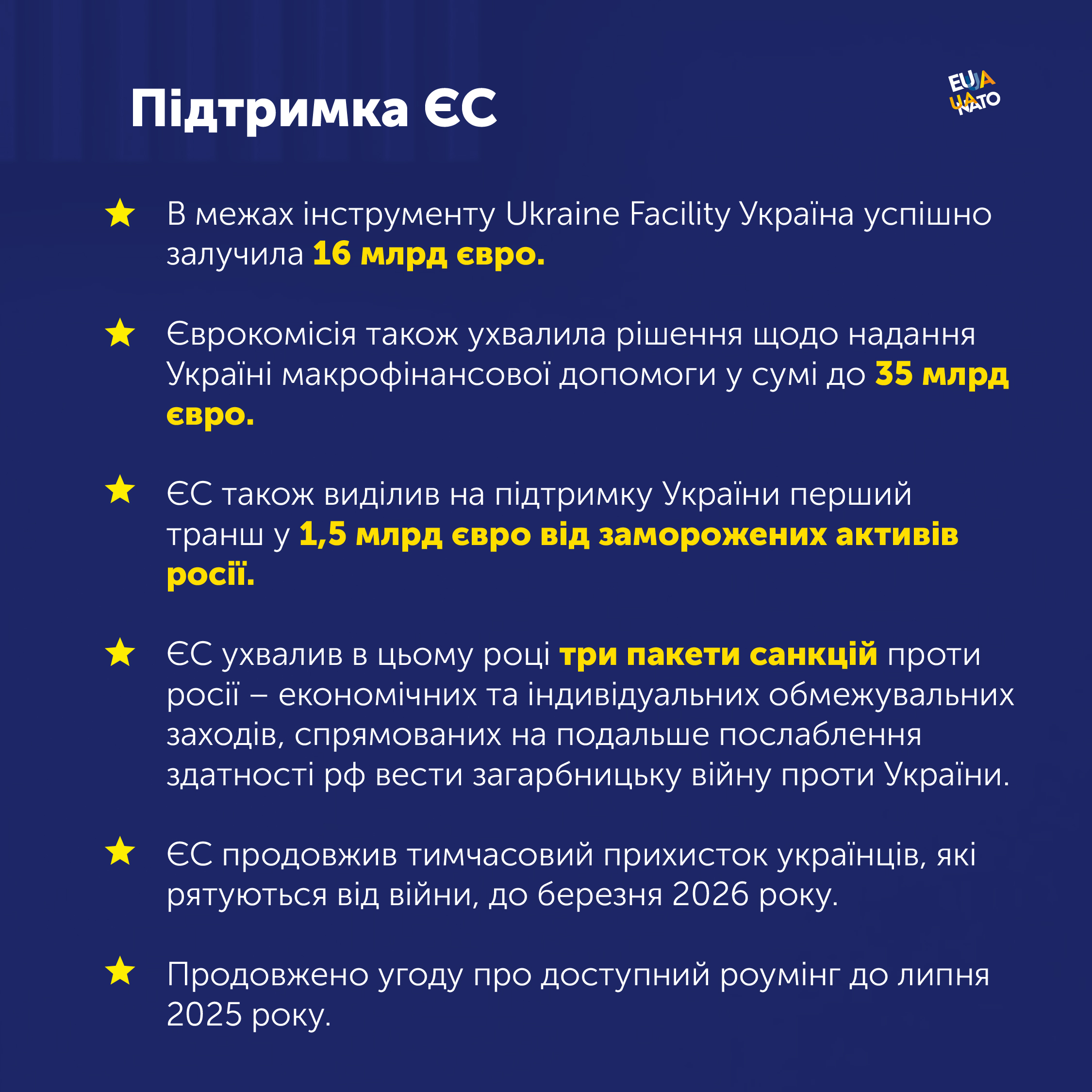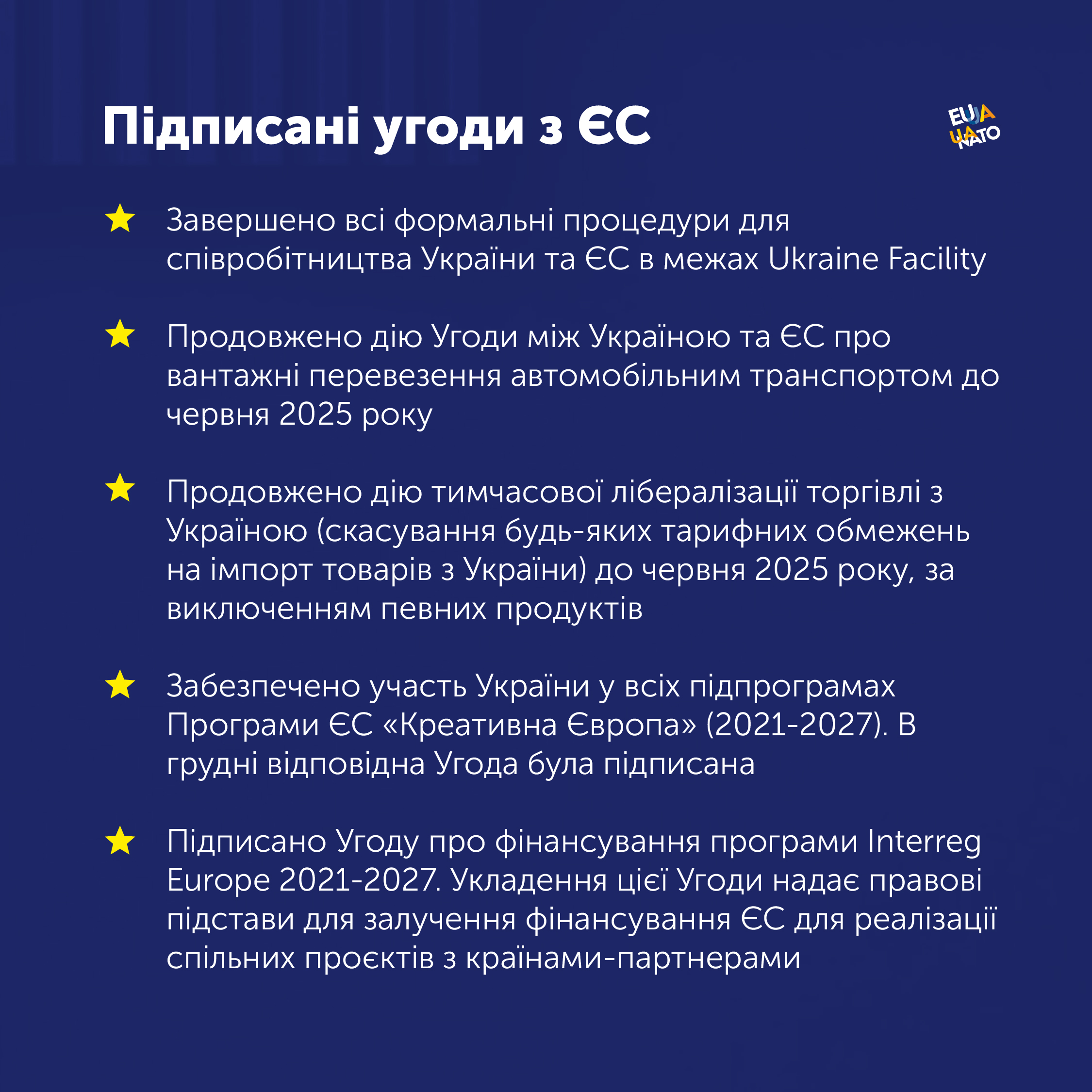 Більше про основні здобутки на шляху України до ЄС цього року та як Євросоюз підтримував нашу країну – в інфографіках.