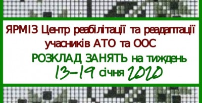 До вашої уваги розклад занять на тиждень 13-19 січня 2020 року в #Ярміз Центрі.
