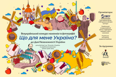 З метою культурно-освітнього розвитку, формування у дітей і підлітків національної ідентичності, патріотичного виховання; соціальної підтримки талановитої молоді, сприяння їх самореалізації та творчому розвитку, активного залучення творчої молоді до соціально-вагомої діяльності, Благодійний фонд «Об’єднання світових культур», Український координаційний центр з підвищення правової освіти населення, Українська молодіжна правнича асамблея за підтримки Департаменту молоді та спорту Київської міської державної адміністрації, Міністерства молоді та спорту України, проводять Всеукраїнський конкурс малюнків та фотографій «Що для мене Україна?», приурочений до Дня Незалежності України.