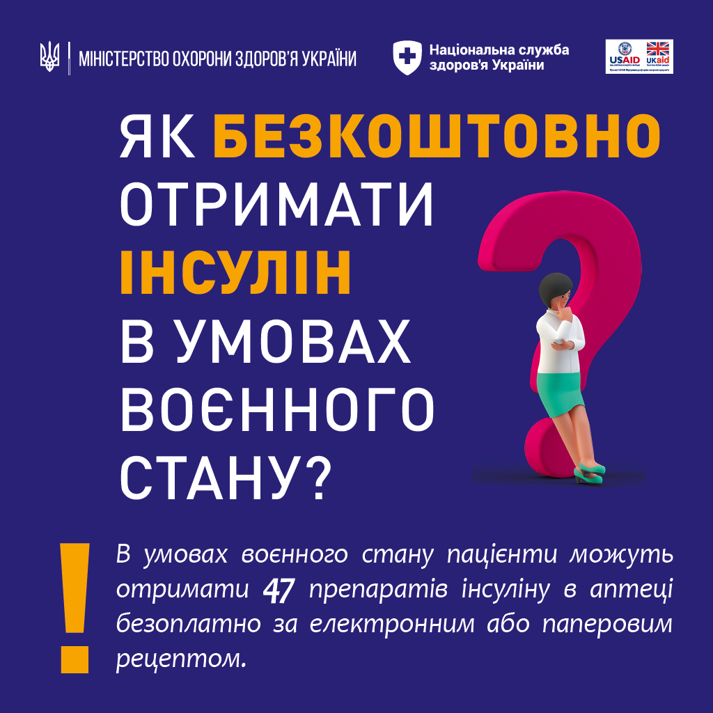 В умовах воєнного стану пацієнти можуть отримати 47 препаратів інсуліну в аптеці безоплатно за електронним або паперовим рецептом.