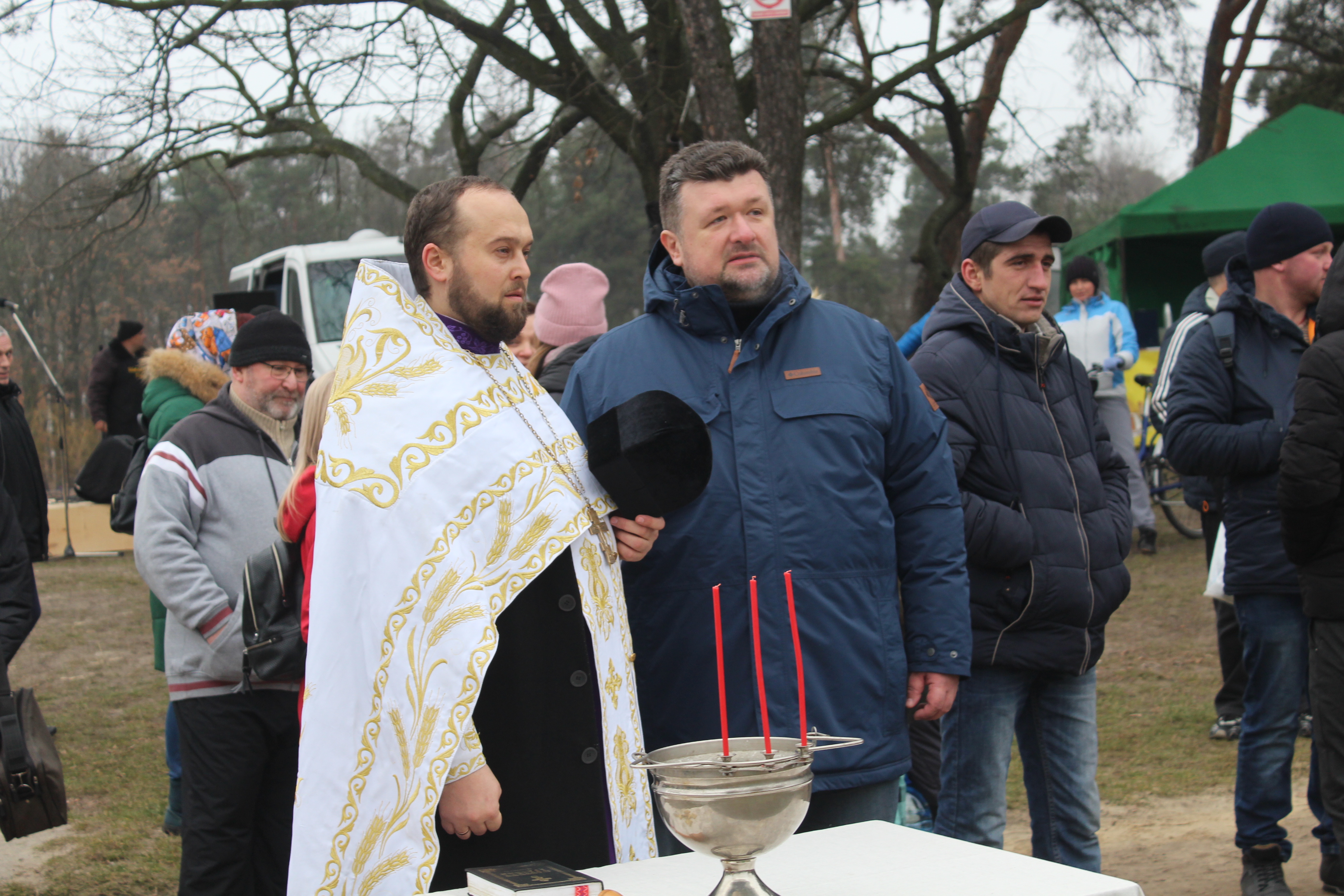 Сьогодні людей зібралося особливо багато. Адже окрім традиційного Водохреща 19 січня Україна сумувала. Сьогодні до України повернули тіла жертв авіакатастрофи літака МАУ в Ірані – в аеропорт «Бориспіль». Дарничани вшанували пам'ять загиблих в авіакатастрофі хвилиною мовчання, а протиєрей Парафії Святих Бориса і Гліба УГКЦ на Позняках отець Андрій та священик Храму святих апостолів Петра і Павла в ПЦУ отець Андрій прочитали молебень по загиблим. Вони ж провели богослужіння та освячення води.